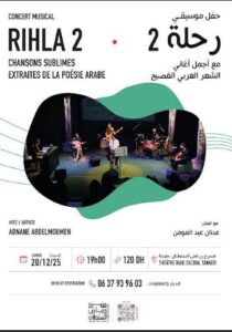 وفي مساء يوم السبت 20 ديسمبر على الساعة السابعة، سيسافر جمهور المسرح مع الحفل الموسيقي “رحلة”، في أمسية فنية تجمع بين جمال اللغة العربية والموسيقى العربية والغربية “الفلامينكو، الجاز، الروك” في قالب موسيقي جديد ولمسة فريدة. هذه الأمسية تمثل الرحلة الثانية للفنان عدنان عبد المومن في مسرح رياض السلطان، بعد النجاح الذي حققته تجربته الأولى.